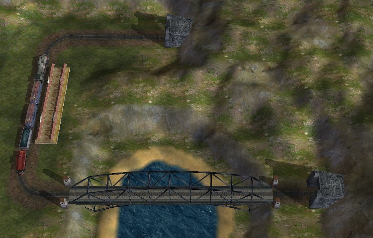 Bei Brücken geht das ganze genauso, nur dass der Zug jetzt nicht unter das Terrain fährt, sondern über dem Boden schwebt. Durch die Brücke sieht das aber normal aus :-P